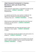 Utah General Contractor-s Course - Business and Law Exam Prep Questions.docx