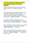 Unit 10- Summary of Worker-s Comp Laws Exam Question with 100- Solution.docx