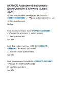 Natashakate On this page, you find all documents, package deals, and flashcards offered by seller NatashaKate. 2654 Documents 0 Flashcards 0 Package deal Community 0 Followers 0 Following 1 Reviews received 0 0 0 0 1 8 months ago • kirstensandoval NBCOT exam practice test (ALEXIA) Exam Question & Answers.docx Repeated questions multiple times, did not cover the whole exam, and had multiple misspelled words. 2654 items Everything Documents Flashcards Package deal Best sold Newest Rating AAB MT Chemistry- Practice questions & Answers ( Latest 2026).docx (0) $18.49 0x sold AAB MT Chemistry- Practice questions & Answers ( Latest 2026).docx i x Exam (elaborations) • 35 pages • by NatashaKate • uploaded 2026 Quick View i x VT Worker\\\\\\\'s Compensation Basics Exa Question & An • VT Worker\\\\\\\'s Compensation Basics Exa Question & An NCMHCE Exam 2025-Term Edition Flashcards Question & Answer ( Latest 2026).docx (0) $8.49 0x sold NCMHCE Exam 2025-Term Edition Flashcards Question & Answer ( Latest 2026).docx i x Exam (elaborations) • 6 pages • by NatashaKate • uploaded 2026 Quick View i x VT Worker\\\\\\\'s Compensation Basics Exa Question & An • VT Worker\\\\\\\'s Compensation Basics Exa Question & An Ch 3 Workers Compensation Exam Question & Answers ( Latest 2026).docx (0) $17.99 0x sold Ch 3 Workers Compensation Exam Question & Answers ( Latest 2026).docx i x Exam (elaborations) • 9 pages • by NatashaKate • uploaded 2026 Quick View i x VT Worker\\\\\\\'s Compensation Basics Exa Question & An • VT Worker\\\\\\\'s Compensation Basics Exa Question & An XCEL Arizona Life and Health Insurance State Exam Question & Answers ( Latest 2026).docx (0) $21.99 0x sold XCEL Arizona Life and Health Insurance State Exam Question & Answers ( Latest 2026).docx i x Exam (elaborations) • 40 pages • by NatashaKate • uploaded 2026 Quick View i x VT Worker\\\\\\\'s Compensation Basics Exa Question & An • VT Worker\\\\\\\'s Compensation Basics Exa Question & An DC Exam prep Exam Question & Answers ( Latest 2026) Grade A+.docx (0) $17.49 0x sold DC Exam prep Exam Question & Answers ( Latest 2026) Grade A+.docx i x Exam (elaborations) • 22 pages • by NatashaKate • uploaded 2026 Quick View i x VT Worker\\\\\\\'s Compensation Basics Exa Question & An • VT Worker\\\\\\\'s Compensation Basics Exa Question & An NCMHCE Assessment Instruments Exam Question & Answers ( Latest 2026).docx (0) $16.49 0x sold NCMHCE Assessment Instruments Exam Question & Answers ( Latest 2026).docx i x Exam (elaborations) • 11 pages • by NatashaKate • uploaded 2026 Quick View i x VT Worker\\\\\\\'s Compensation Basics Exa Question & An • VT Worker\\\\\\\'s Compensation Basics Exa Question & An VT Worker-s Compensation Basics Exam Question & Answers ( Latest 2026).docx (0) $17.99 0x sold VT Worker-s Compensation Basics Exam Question & Answers ( Latest 2026).docx i x Exam (elaborations) • 11 pages • by NatashaKate • uploaded 2026 Quick View i x VT Worker\\\\\\\'s Compensation Basics Exa Question & An • VT Worker\\\\\\\'s Compensation Basics Exa Question & An Internal Audit Exam 1 Question & Answers ( Latest 2026).docx (0) $16.49 0x sold Internal Audit Exam 1 Question & Answers ( Latest 2026).docx i x Exam (elaborations) • 38 pages • by NatashaKate • uploaded 2026 Quick View i x RESNA Assistive Technology Professional Exa • RESNA Assistive Technology Professional Exa CMAA Module 1 Exam Question & Answers ( Update 2026).docx (0) $19.99 0x sold CMAA Module 1 Exam Question & Answers ( Update 2026).docx i x Exam (elaborations) • 73 pages • by NatashaKate • uploaded 2026 Quick View i x RESNA Assistive Technology Professional Exa • RESNA Assistive Technology Professional Exa APA quiz 1 Exam Question & Answers 2026.docx (0) $15.99 0x sold APA quiz 1 Exam Question & Answers i x Exam (elaborations) • 5 pages • by NatashaKate • uploaded 2026 Quick View i x RESNA Assistive Technology Professional Exa • RESNA Assistive Technology Professional Exa 1 2 3 4 5 ...