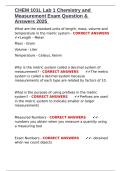CHEM 101L Lab 1 Chemistry and Measurement Exam Question & Answers