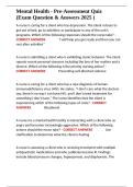 Mental Health - Pre-Assessment Quiz (Exam Question & Answers 2025 ).docx