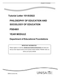 Tutorial Letter 101/0/2022 PHILOSOPHY OF EDUCATION AND SOCIOLOGY OF EDUCATION PSE4801