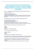 Pharmacology Final Exam (Questions from quizzes) Questions & Answers Latest Updated 100 QUESTI