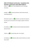 This document contains a comprehensive collection of test questions and detailed answers for the WGU C172 Network and Security – Foundations course. It covers core networking and security concepts including OSI layers, network topologies, IP addressing, wireless standards, routing and switching, cabling, protocols, firewalls, VPNs, and common security threats. The material is suitable as complete exam preparation and revision content aligned with the latest WGU C172 assessment requirements
