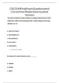 Nersejudy9 On this page, you find all documents, package deals, and flashcards offered by seller NERSEJUDY9. 37 Documents 0 Flashcards 0 Package deal Community 0 Followers 0 Following 37 items Everything Documents Flashcards Package deal Best sold Newest Rating NACC PSW Exam – Personal Support Worker certification – exam preparation material (0) $18.49 0x sold This document covers the key knowledge areas required for the NACC PSW exam, focusing on essential skills, responsibilities, and standards for Personal Support Workers. It is intended as a focused study and review resource to support certification exam preparation. i x Exam (elaborations) • 19 pages • by NERSEJUDY9 • uploaded 2026 Quick View i x NACC PSW • NACC PSW WGU C955 – Objective Assessment – complete exam preparation material (0) $18.49 0x sold This document covers the key concepts and competencies assessed in the WGU C955 Objective Assessment, focusing on the core topics required to pass the exam. It is structured to support efficient review and targeted preparation aligned with WGU assessment standards. i x Exam (elaborations) • 20 pages • by NERSEJUDY9 • uploaded 2026 Quick View i x WGU C955 OBJECTIVE ASSESSMENT • WGU C955 OBJECTIVE ASSESSMENT HESI Mental Health RN V1–V3 – comprehensive exam preparation material (0) $18.49 0x sold This document covers HESI Mental Health RN versions V1 through V3, focusing on key psychiatric nursing concepts, patient care scenarios, and exam-style questions. It is designed to support effective review and preparation for mental health nursing assessments. i x Exam (elaborations) • 90 pages • by NERSEJUDY9 • uploaded 2026 Quick View i x HESI MENTAL HEALTH RN V1-V3 • HESI MENTAL HEALTH RN V1-V3 Range Safety OIC/RSO – range safety responsibilities and procedures – study summary (0) $18.49 0x sold This document covers the roles, responsibilities, and procedures associated with serving as a Range Safety Officer (RSO) or Officer in Charge (OIC). It focuses on safety standards, operational control, and risk management required for safe and compliant range operations. i x Exam (elaborations) • 22 pages • by NERSEJUDY9 • uploaded 2026 Quick View i x Range Safety OIC/RSO • Range Safety OIC/RSO CDFM Module 1 – introductory course material – lecture summary (0) $18.49 0x sold This document covers the core content of CDFM Module 1, focusing on the foundational concepts introduced at the start of the course. It is designed as a clear overview to support understanding and revision of the main topics discussed in this module. i x Exam (elaborations) • 58 pages • by NERSEJUDY9 • uploaded 2026 Quick View i x CDFM MODULE 1 • CDFM MODULE 1 CSCI 240 – Final Exam – complete exam material (0) $18.49 0x sold This document contains final exam material for CSCI 240, covering the core topics addressed throughout the course. It is suitable for exam preparation and review, helping students consolidate key concepts likely to appear on the final assessment. i x Exam (elaborations) • 37 pages • by NERSEJUDY9 • uploaded 2026 Quick View i x CSCI jj 240 • CSCI jj 240 Cyber Security – Computer Engineering Department, Engineering and Technology – Practice Questions (0) $18.49 0x sold : This document contains practice questions for the Cyber Security course within the Computer Engineering Department of the Engineering and Technology faculty. It is designed to help students test their understanding of key cybersecurity concepts and prepare effectively for exams and assessments. i x Exam (elaborations) • 12 pages • by NERSEJUDY9 • uploaded 2026 Quick View i x cyber_security • cyber_security Cybersecurity (0) $18.49 0x sold Cybersecurity