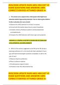 This document contains a comprehensive collection of NURS 6401 HESI Exit V2 exam questions with clearly indicated correct answers, covering a wide range of nursing concepts tested on the HESI Exit exam. Topics include pediatrics, adult health, mental health nursing, pharmacology, maternity, community health, and critical care, making it suitable as final exam preparation material. The content is presented as exam-style questions and answers and reflects updated material for the 2026–2027 acade...