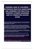 NURSING CARE OF CHILDREN 1 EXTENSIVE PRACTICE QUESTIONS AND ANSWERS FOR PRACTICAL NURSING STUDENT,READINES AND ATI PREDICTOR SUCCES GUIDE
