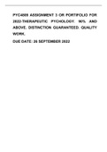 PYC4809 THERAPEUTIC PYCHOLOGY ASSIGNMENT 03-PORTFOLIO FOR 2022. DUE DATE: 26 SEPTEMBER 2022. DISTINCTION GUARANTEED.