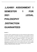 LJU4801 Assignment 1 Semester 1 for 2021- Legal philosophy. Distinction guarantee. 90 % and above.