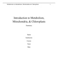 Introduction to Metabolism, Mitochondria, & Chloroplasts. ILOs 1B 4