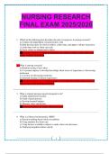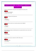 __________________... i x Exam (elaborations) • 30 pages • by NjoguAmos • uploaded 2025 Quick View i x GOULD\\\\\\\'S PATHOPHYSIOLOGY, 7TH EDITION • GOULD\\\\\\\'S PATHOPHYSIOLOGY, 7TH EDITION PEDIATRIC CAREGIVER PRACTITIONER EXAM PRACTICE QUESTIONS 1.The concept of health promotion consists of efforts to prevent rather than to cure disease or disability. This description best describes: a. tertiary prevention b. secondary prevention c. primar (0) $17.49 0x sold NURSING RESEARCH FINAL EXAM 2025/2026