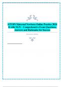 Njoguamos On this page, you find all documents, package deals, and flashcards offered by seller NjoguAmos. 595 Documents 0 Flashcards 2 Package deal Community 18 Followers 0 Following 1 Reviews received 0 0 0 1 0 2 year ago • zayflo3011 NGN RN ATI PEDIATRIC REAL PROCTORED EXAM [NCLEX] QUESTIONS WITH CORRECT ANSWERS 2024 NEW UPDATE A lot do not have the answers and its very confusing By: • 2 year ago Hello .Kindly recheck on the document since all the correct answers are provided By: • 9 months ago Kindly follow the document keenly,,,, it contains all answers 597 items Everything Documents Flashcards Package deal Best sold Newest Rating ATI RN Maternal Newborn Online Practice Exam 2024-2025 with Next Generation NCLEX (NGN) Comprehensive Study Guide & Answers (0) $13.89 0x sold ATI RN Maternal Newborn Online Practice Exam with Next Generation NCLEX (NGN) Comprehensive Study Guide & Answers