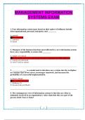 A. Result of company ma... i x Exam (elaborations) • 21 pages • by NjoguAmos • uploaded 2025 Quick View i x INFORMATION SYSTEMS MANAGEMENT • INFORMATION SYSTEMS MANAGEMENT MANAGEMENT INFORMATION SYSTEMS – Complete Exam Test Bank | Information Security, Networking & Business Intelligence Review (0) $15.49 0x sold This document provides a comprehensive collection of multiple-choice questions and answers for a Management Information Systems (MIS) exam. It covers major topics such as information systems types, cybersecurity, ethics, data management, databases, business intelligence (BI), analytics, and networking fundamentals. Students will also find detailed coverage of Leavitt’s Diamond, risk assessment, green computing, and web technologies. This test bank is ideal for exam preparation and in-depth rev... i x Exam (elaborations) • 16 pages • by NjoguAmos • uploaded 2025 Quick View i x MANAGEMENT INFORMATION SYSTEMS • MANAGEMENT INFORMATION SYSTEMS OCR A CHEMISTRY A LEVEL PAPER 1 (0) $16.49 0x sold OCR A CHEMISTRY A LEVEL PAPER 1