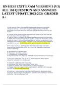 RN HESI EXIT EXAM VERSION 3 (V3) ALL 160 QUESTION AND ANSWERS LATEST UPDATE 2023-2024 GRADED A+