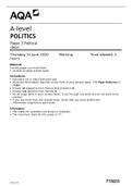 AQA Unit 2 GOVP2 - A-level POLITICS 7152/3 Paper 3 Political IdeasTest + Mark scheme