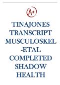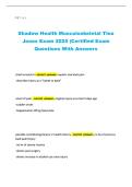 This document contains the complete 2025 musculoskeletal assessment exam for the Tina Jones virtual patient in the Shadow Health simulation. It includes all certified exam questions, patient responses, and detailed answers covering joint inspection, palpation, range of motion testing, muscle strength evaluation, and extremity assessment. The material is designed to help nursing students prepare for Shadow Health musculoskeletal exams, practice clinical reasoning, and ensure accurate documentatio...