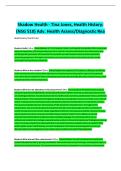 This document contains the complete health history assessment for the Tina Jones virtual patient in the Shadow Health simulation for NSG 510 Advanced Health Assessment and Diagnostic Reasoning. It includes the full patient interview, subjective health information, past medical and surgical history, medications, allergies, family and social history, and review of systems. The material is designed to help nursing students practice comprehensive health history collection, clinical reasoning, and ac...