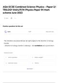 AQA GCSE Combined Science Physics - Paper 2/: TRILOGY 8464/P/1H Physics Paper 1H Mark scheme June 2023