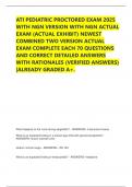 ATI PEDIATRIC PROCTORED EXAM 2025 WITH NGN VERSION WITH NGN ACTUAL EXAM (ACTUAL EXHIBIT) NEWEST COMBINED TWO VERSION ACTUAL EXAM COMPLETE EACH 70 QUESTIONS AND CORRECT