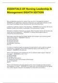 ESSENTIALS OF Nursing Leadership & Management EIGHTH EDITION Why is leadership important for nurses if they are not in a management position? - ANSWERS--B) Leadership is important at all levels in an organization because nurses have expert knowledge and