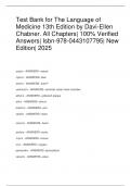 Test Bank for The Language of Medicine 13th Edition by Davi-Ellen Chabner. All Chapters| 100% Verified Answers| Isbn-978-0443107795| New Edition| 2025 angi/o - ANSWERS--vessel cyan/o - ANSWERS--blue arter/o - ANSWERS--arterY ventricul/o - ANSWERS--ven