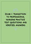 This document includes a complete set of Exam 1 test questions for Transition to Professional Nursing, with all answers verified for accuracy. It covers foundational nursing concepts such as professional roles, ethical practice, communication, patient safety, and clinical responsibility, making it ideal for exam-focused revision.