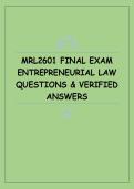 This document contains the full set of final exam questions for MRL2601 Entrepreneurial Law, with all answers verified for accuracy. It covers essential topics such as business formation, contracts, intellectual property, liability, and regulatory compliance, making it ideal for exam revision and preparation.