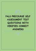 This document contains a complete set of self-assessment test questions for the PALS precourse, with all answers verified for accuracy. It covers core Pediatric Advanced Life Support concepts, including recognition of emergencies, intervention protocols, and resuscitation procedures, making it ideal for precourse preparation and skill reinforcement.