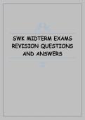 This document contains structured revision questions and accurate answers designed to support preparation for Social Work (SWK) midterm examinations. It covers foundational theories, ethics and values, policy concepts, practice frameworks, and assessment principles commonly tested in midterm exams.