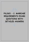 This document contains exam-oriented questions with detailed and well-explained answers on Topic 2: Marriage Requirements for the PVL2601 Private Law course. It covers the legal requirements for a valid marriage, capacity to marry, consent, formalities, and the consequences of non-compliance, aligned with typical exam expectations.