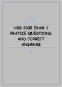 This document contains practice questions with correct and verified answers for Exam 1 of the NSG 2600 course. It covers foundational nursing concepts, patient care principles, nursing process, health assessment, basic pharmacology, and clinical decision-making essential for exam preparation and review.