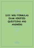 This document contains verified exam questions and accurate answers focused on key formulas used in the WGU D101 Managerial Accounting exam. It covers essential calculations such as cost-volume-profit analysis, contribution margin, break-even analysis, variances, budgeting formulas, and performance measures, making it ideal for formula-based exam preparation.