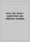 This document contains verified exam questions and answers for BUSI 1301 Exam 1. It covers foundational business concepts, including business ethics, management principles, organizational structures, marketing basics, and economic principles, providing a reliable study resource for exam preparatio