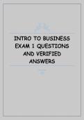 This document contains verified exam questions and answers for Exam 1 in Introduction to Business. It covers key topics such as business types, management principles, marketing fundamentals, ethics, and the economic environment, providing a comprehensive study resource for exam preparation