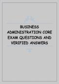 This document contains verified exam questions and answers for the Business Administration Core exam. It covers essential topics such as management principles, organizational behavior, marketing, finance, accounting, and strategic decision-making, making it a comprehensive study resource for core business administration preparation