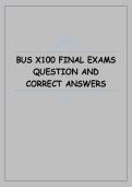 This document contains final exam–level questions with correct and verified answers for the BUS X100 course. It covers comprehensive business concepts, including management principles, organizational behavior, marketing, finance basics, business ethics, and strategic decision-making, providing a complete resource for final exam preparation.