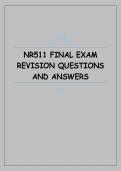 This document contains comprehensive revision questions with verified answers for the NR511 final exam. It covers key topics such as advanced health assessment techniques, diagnostic reasoning, patient history, system-based physical examinations, clinical interpretation, and evidence-based decision-making to support effective final exam preparation.