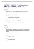 NURSING NUR 108 Final Exam Latest 2023 (Graded 100%) Graded A+.