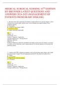 3. Considering the absorption of medications during administration,... i x Exam (elaborations) • 229 pages • by NurseOwen • uploaded 2024 Quick View i x PHARMACOLOGY- • PHARMACOLOGY- MEDICAL SURGICAL NURSING 10TH EDITION BY BRUNNER LATEST QUESTIONS AND ANSWERS 2024-2025 (MANAGEMENT OF PATIENTS FROM HEART DISEASE) (0) $11.89 0x sold MEDICAL SURGICAL NURSING 10TH EDITION
