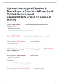 Systemic Neurological Disorders & Dental Impacts Questions & Correct and Verified Answers.Latest update2025/2026 Graded A+, Exams of Nursing