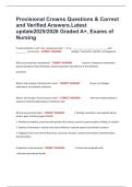 Provisional Crowns Questions & Correct and Verified Answers.Latest update2025/2026 Graded A+, Exams of Nursing