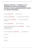 Biology 109 exam 1: Chapters 1,2,3 Questions & Correct and Verified Answers.Latest update2025/2026 Graded A+, Exams of Nursing