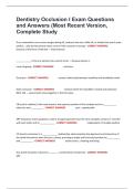 Dentistry Occlusion I Exam Questions and Answers (Most Recent Version, Complete Study