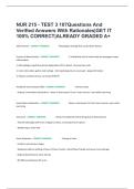 NUR 215 - TEST 3 107Questions And Verified Answers With Rationales|GET IT 100% CORRECT|ALREADY GRADED A+
