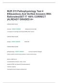 NUR 215 Pathophysiology Test 4 85Questions And Verified Answers With Rationales|GET IT 100% CORRECT |ALREADY GRADED A+
