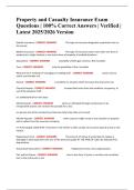 Property and Casualty Insurance Exam Questions | 100% Correct Answers | Verified | Latest 2025/2026 Version