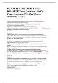 BUSINESS CONTINUITY AND DISASTER Exam Questions | 100% Correct Answers | Verified | Latest 2025/2026 Version