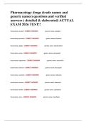 Pharmacology drugs (trade names and generic names) questions and verified answers ( detailed & elaborated) ACTUAL EXAM 2026 TEST!
