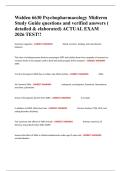 Walden 6630 Psychopharmacology Midterm Study Guide questions and verified answers ( detailed & elaborated) ACTUAL EXAM 2026 TEST!!