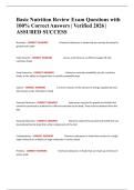Basic Nutrition Review Exam Questions with 100% Correct Answers | Verified 2026 | ASSURED SUCCESS